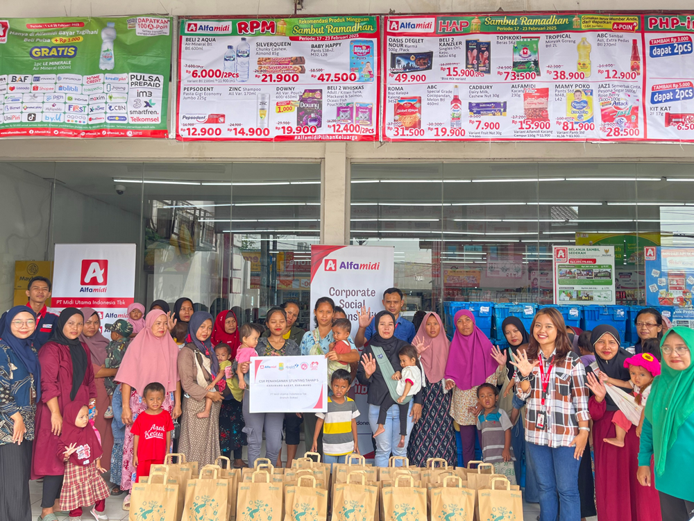 Alfamidi cabang Bekasi melanjutkan inisiatif corporate social responsibility (CSR) Keluarga Sehat Alfamidi dalam program “Protein Cegah Stunting” yang berfokus kepada upaya mengatasi masalah stunting di Kecamatan Karawang Barat pada Jumat (28/2/2025).
