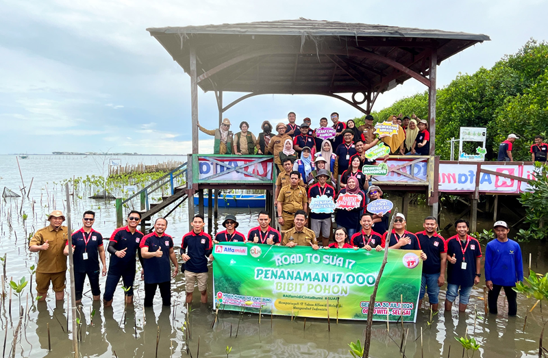 Dalam upaya menghijaukan lingkungan, PT Midi Utama Indonesia atau Alfamidi Branch Makassar memberikan kontribusinya dengan melakukan penanaman 3000 pohon mangrove yang ditanam pada areal seluas satu hektar di Kawasan Wisata Mangrove Lantebung, Tamalanrea, Makassar, Selasa (30/07/24). Penanaman pohon ini masih dalam rangkaian sambut Semarak Ulang Tahun Alfamidi ke 17 tahun dan