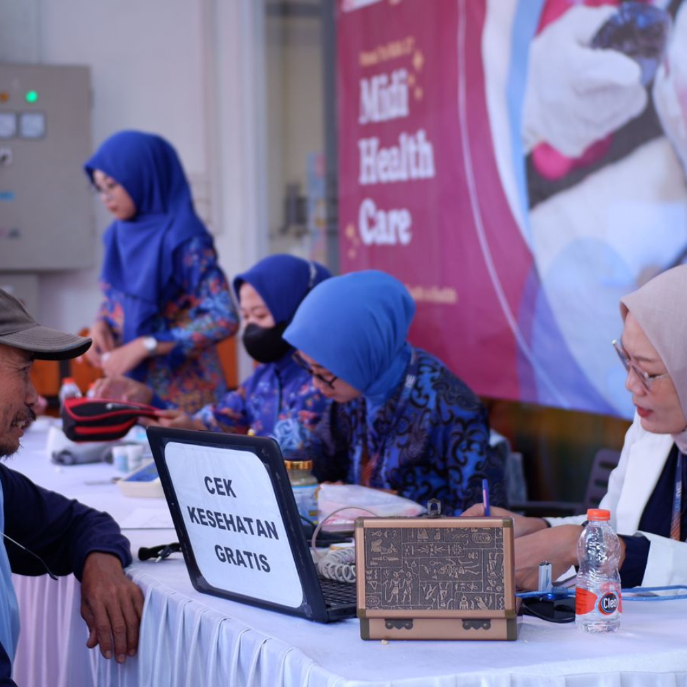 Menjelang Semarak Ulang Tahun PT Midi Utama Indonesia ke-17, Alfamidi melalui program Corporate Social Responsibility (CSR) menggelar pemeriksaan kesehatan gratis di halaman gerai Alfamidi Erlangga, Kelurahan Sukorejo, Kecamatan Ngasem, Kabupaten Kediri, Jawa Timur, Rabu (10/7/24).