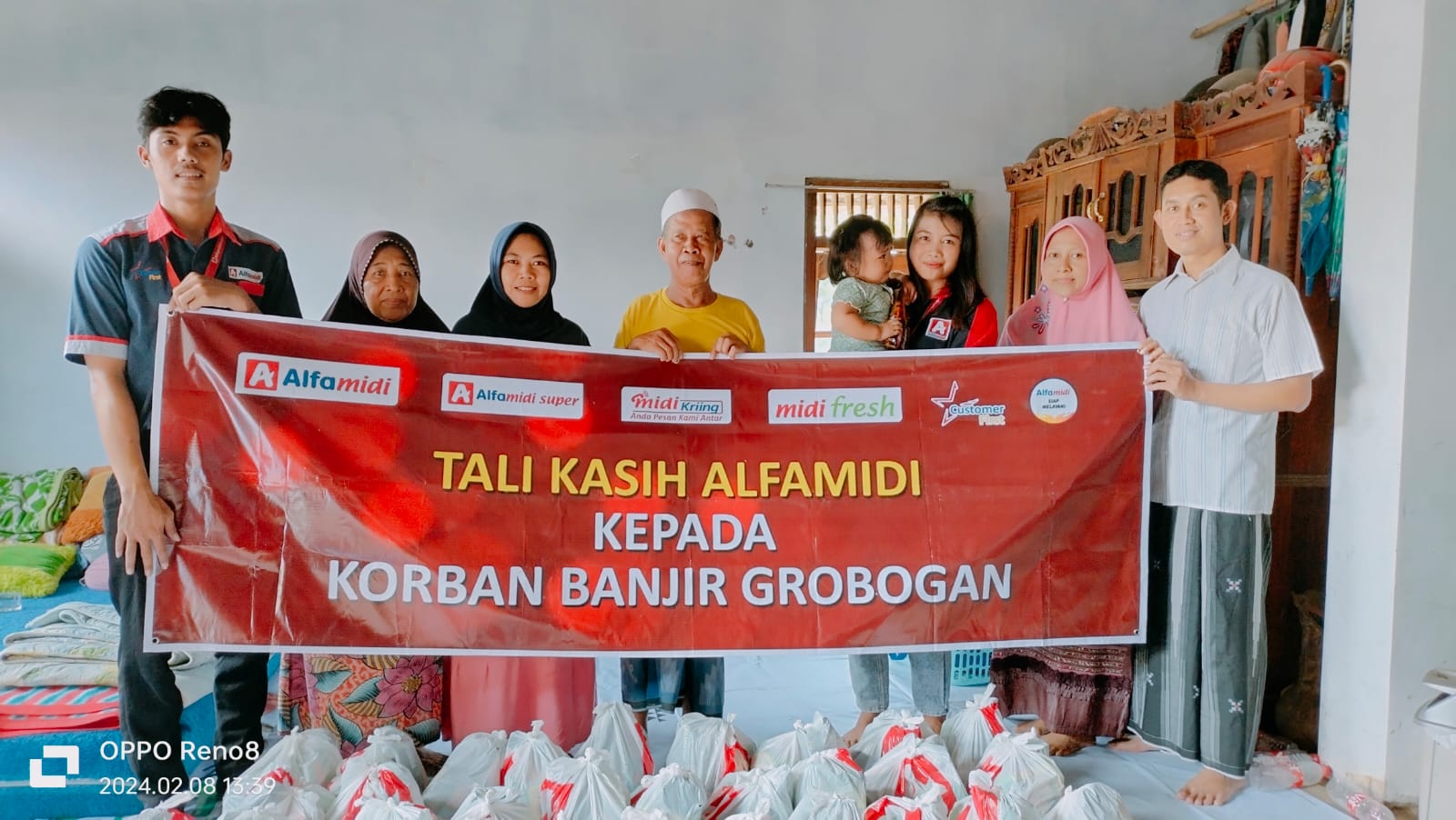 Alfamidi memberikan bantuan sembako bagi korban terdampak banjir yang melanda Kabupaten Grobogan, Jawa Tengah. Branch Manager Alfamidi Cabang Boyolali, Purwandi, mengatakan bantuan ini diharapkan dapat meringankan beban bagi masyarakat terdampak banjir. "Semoga korban banjir bisa segera kembali beraktivitas seperti sedia kala," tuturnya. Sebelumnya pada 6 Februari 2024, sebanyak 11 kecamatan di Kabupaten