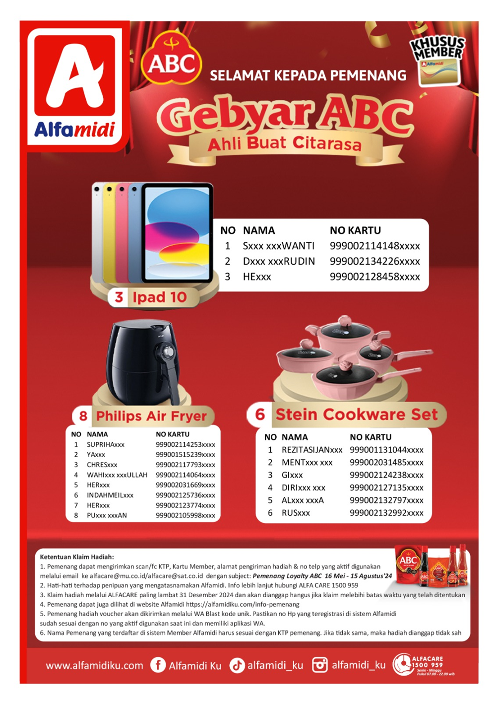 - Klaim hadiah melalui ALFACARE paling lambat 15 Maret 2025 dan akan dianggap