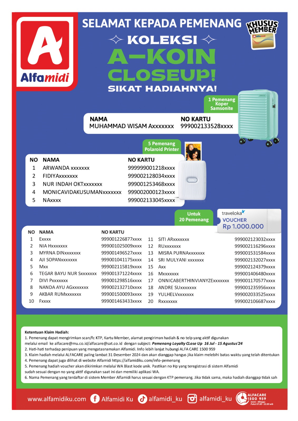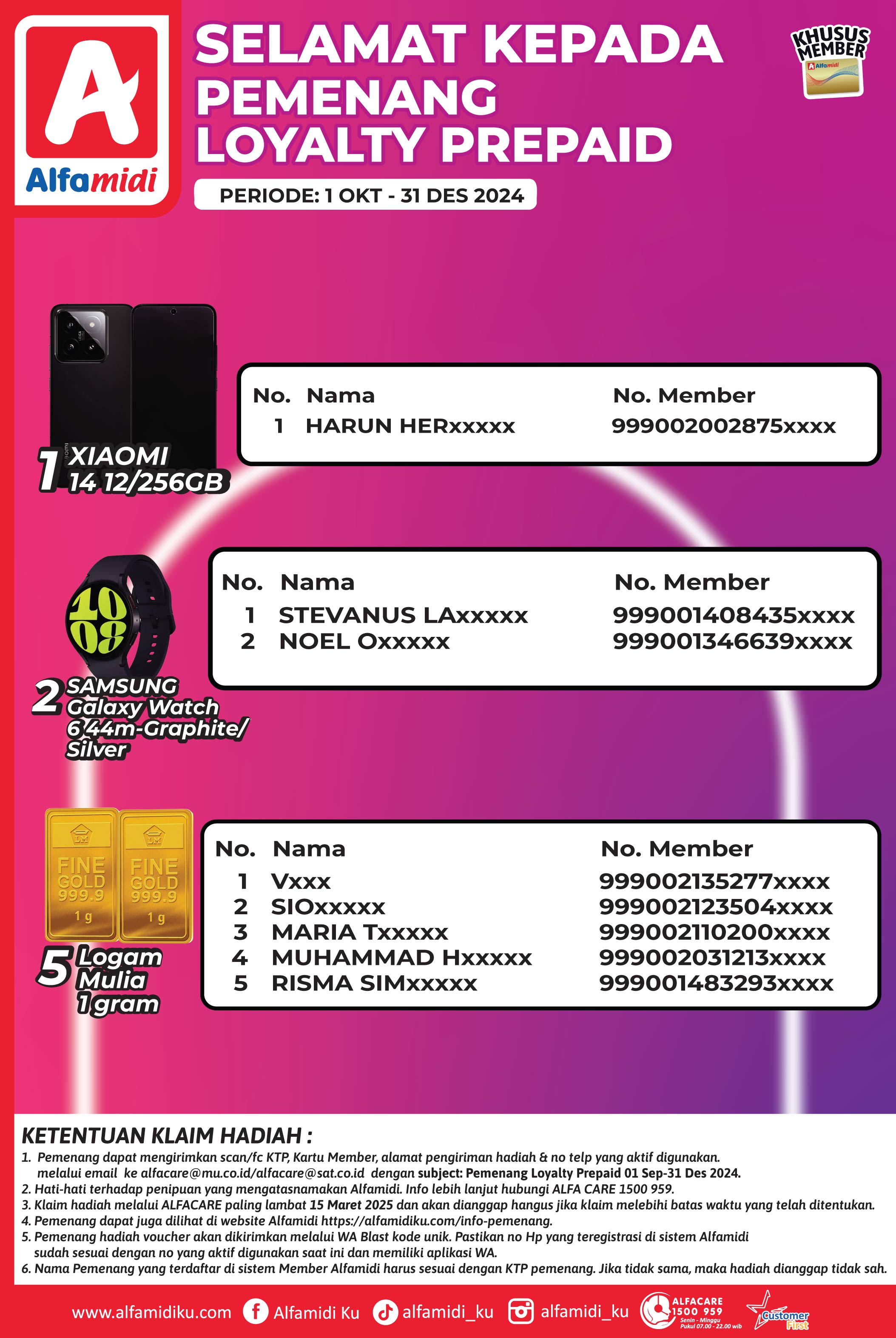 Pemenang Loyalty Prepaid Member Alfamidi periode 1 Oktober - 31 Desember 2024